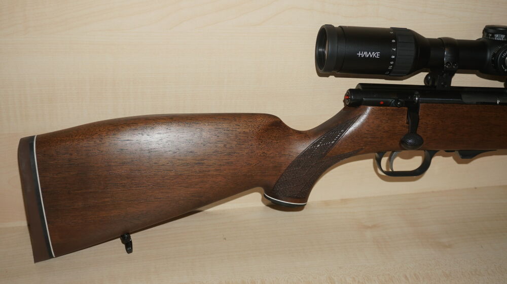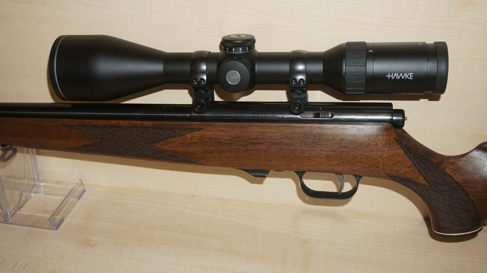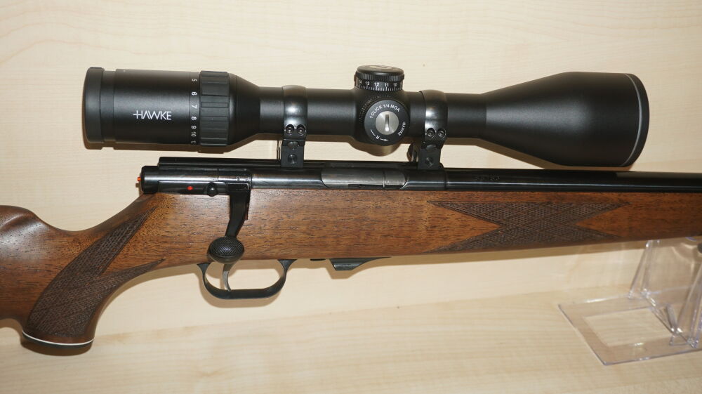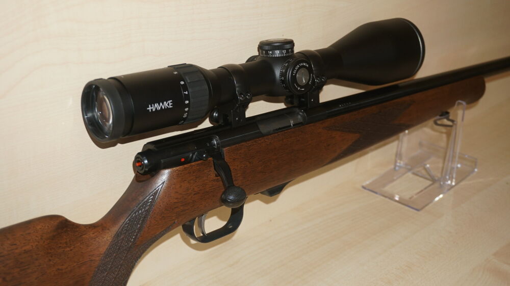 Repetierbüchse Weihrauch, Modell HW 60 J im Kaliber 17 Hornet mit Druckpunktabzug, Mündungsgewinde, 4 Schuß Magazin, Recknagel Aufschubmontage, Zielfernrohr Hawke, Endurance 30 WA, 3 - 12 x 56 Leuchtabsehen LRC.