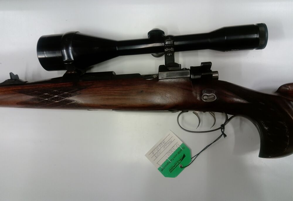 Repetierbüchse Mauser Mod. 1909 Kal. 7x66 SE v. H. Zielfernrohr Zeiss 8x56  Suhler-Einhak-Montage Lauflänge: 66cm Schaftlänge: 38cm Zustand: gut, mit Gebrauchsspuren   Artik... ...weiterlesen