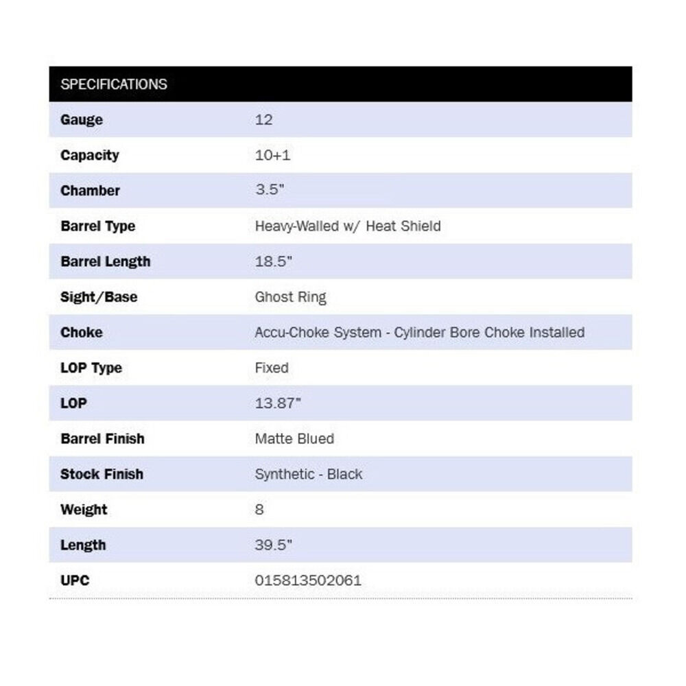 Kaliber 12/89, Modell 590M Mag-Red VRep.Flinte 10+1 Patronen, Magazin 10 Patronen 12/70 extern, Lauflänge 18,5"/47cm dickwandig mit Hitzeschild, schwarz matt, Systemkasten vorgebohrt für Montageschiene, Visierung Ghost Ring, Synthetikschäftung schwarz, Gummischaftkappe, Accu-Choke System, Gesamtlänge 39,5"/100,3cm, CIP Stahlschrotbeschuss, Code 50206 Mossberg USA. Hinweis- das Magazin ist nur für Patronen im Kaliber 12/70 geeignet! - Verkauf solange vorrätig!