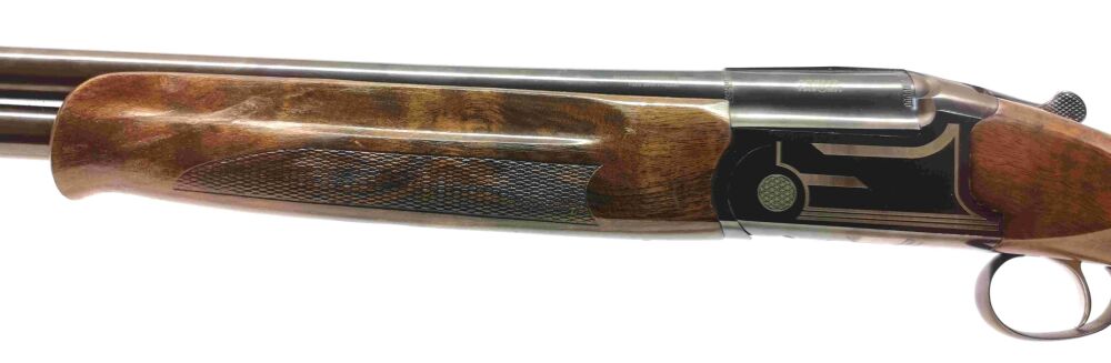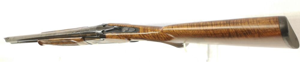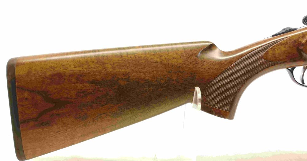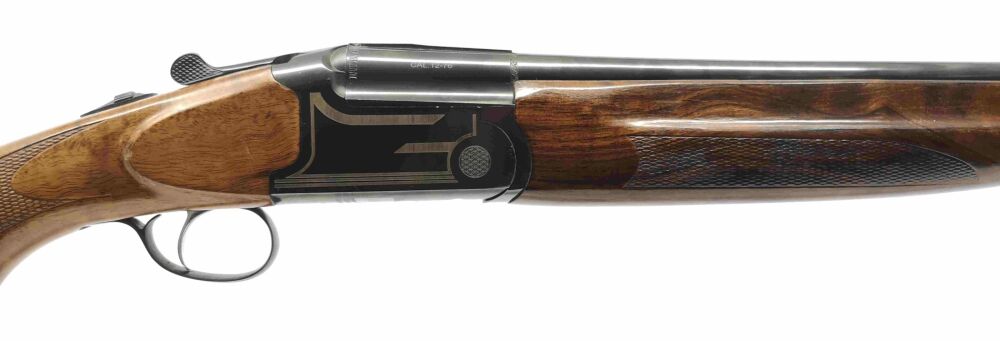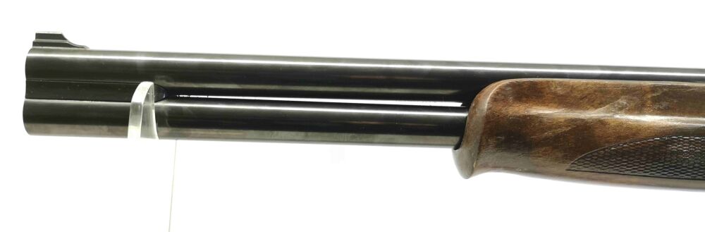 Besonderheit: kurze Bockdoppelflinte m. Stahlschrotbeschuß, Cylinderchoke (2x), Laufpriorität umschaltbar, Balkenkorn statt Perlkorn, aktuell NP 849,00, mit Auszieher
