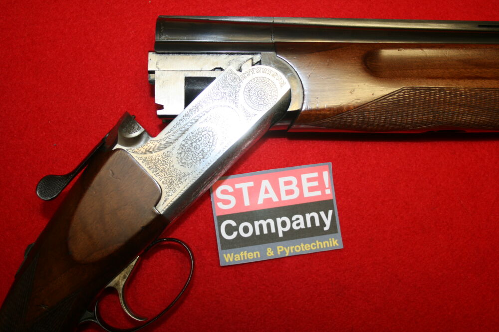 Bockflinte Made in Italy Einabzug , vergoldet ventilierte Gummischaftkappe Riemenhalter Nussbaumholzschaft Fischhaut am Griff und Vorderschaft Abzug-Schaftkappe 34 cm Lauflänge 70 c... ...weiterlesen
