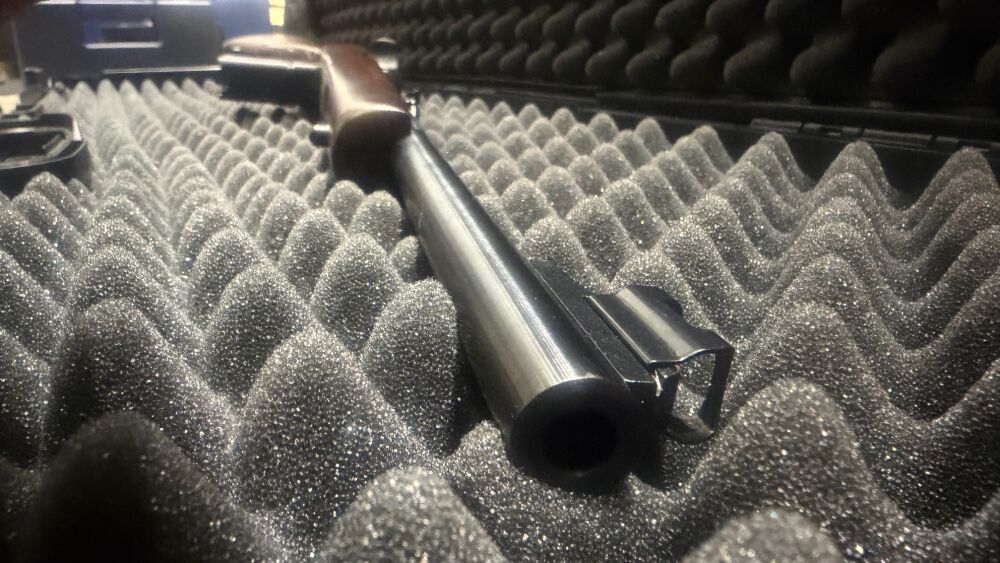 Die Waffe hat einen Masseverschluss und Vorbereitung für eine Montage. (Madenschrauben auf der Schiene)