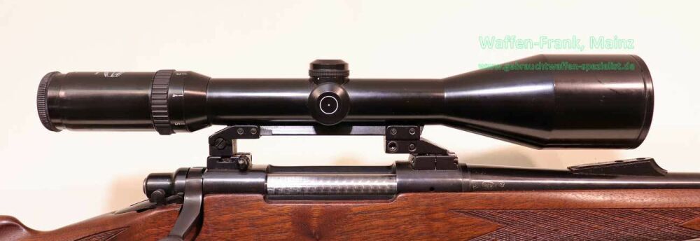 selten geschossen, aus Sammlungsauflösung, mit weltweit bewährtem, massivem, gut gängigem Zylinderverschluss, Feinabzug, abklappbarer Kastendeckel, 4+1 Schuss, EAW-Schwenkmontage mit ZF Schmidt & Bender Klassik 2,5-10x56 Absehen 1, gut gemaserter Nussbaumschaft mit Backe für Rechtsschützen, Schaftlänge 355mm, handgeschnittene, schottische Fischhaut, abnehmbare Riemenbügel, dunkler Kubststoffabschluss an Vorderschaft und Pistolengriff mit klassischer weißer Zierzwischenlage