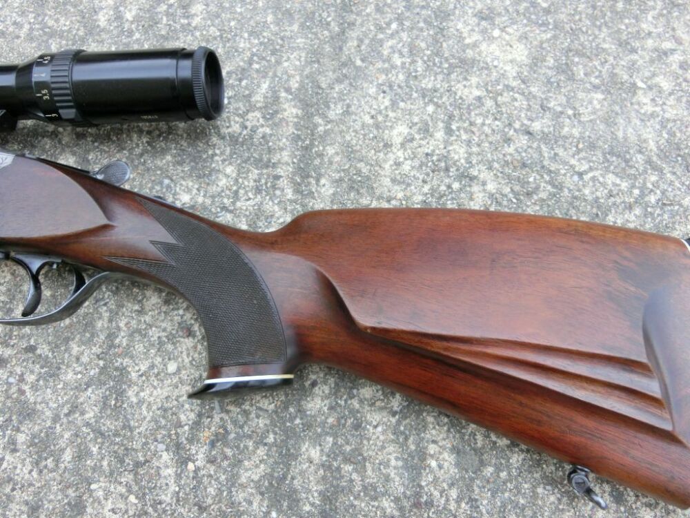 Kipplaufbüchse Gebr. Adamy Suhl gebraucht Ware  Suhler Handwerkskunst Beschußjahr Februar 1990 -kal.8x57JRS -Laufkontur von Achtkant auf Rund -Lauflänge 60 cm -Schaftlänge  32cm Schaft mit Schwei... ...weiterlesen