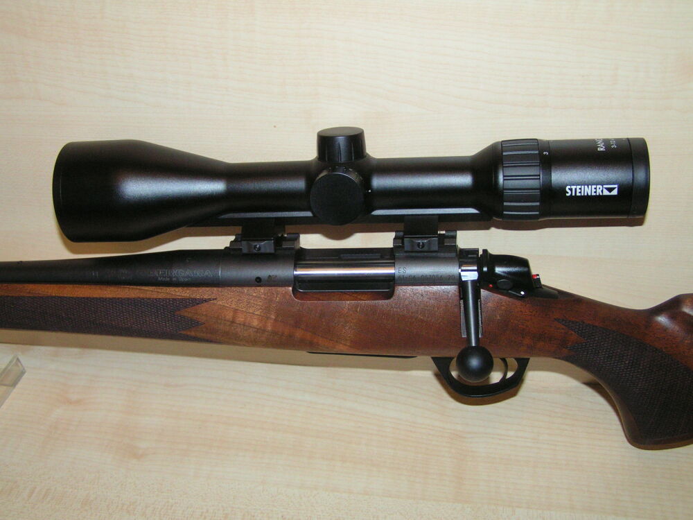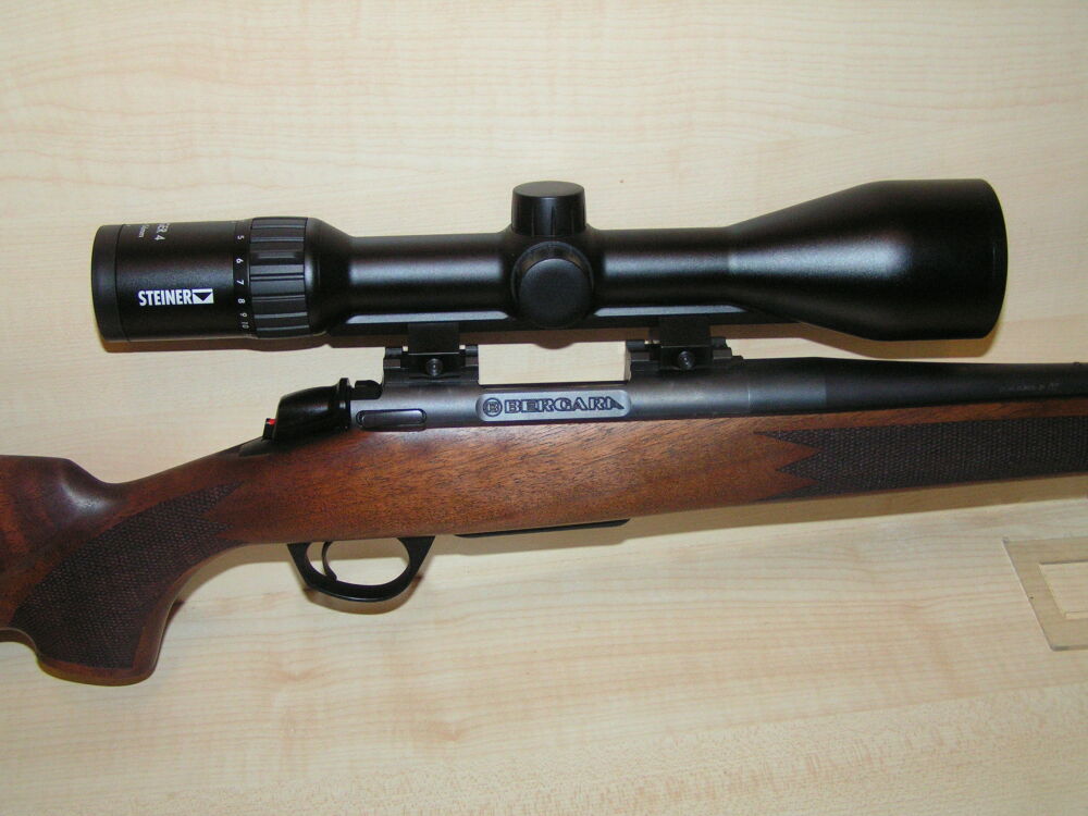 Linkssystem Repetierbüchse Bergara, B14 Timber im Kaliber 308 Win. mit Lauflänge 56 cm, Mündungsgewinde, Weavermontage und Zielfernrohr Steiner Ranger 4, 3 - 12 x 56 Leuchtabsehen 4 mit Schiene.