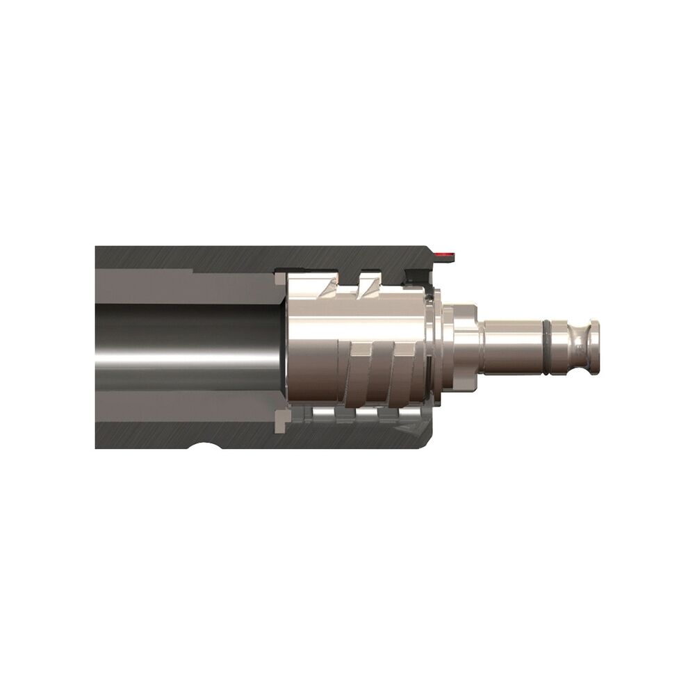 Die Linearbewegung des Kammergriffs wird im Verhältnis 1:2 auf den Verschlusskopf übertragen. Er fährt in einem speziellen System der Helixspur weich und leise in die Verriegelung - und auch wieder heraus. Der Repetierweg ist dabei übersetzt: Schnellstes Repetieren garantiert. Das kommt der schnelleren Zielerfassung und damit dem präzisen Folgeschuss zugute.