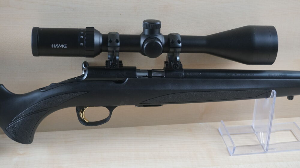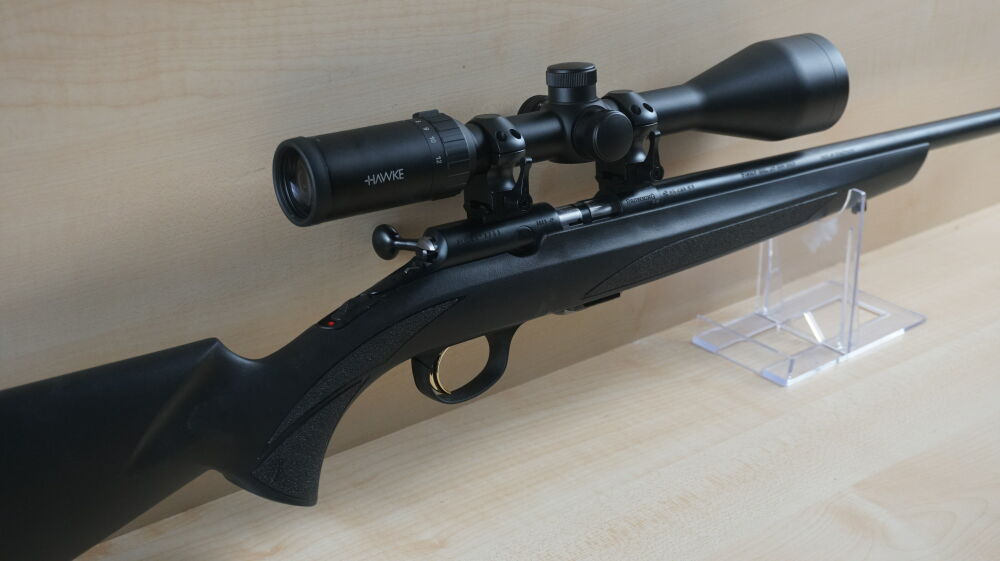 Linkssystem - Repetierbüchse Browning, Modell T-Bolt im Kaliber 17 HMR mit 42 cm Lauflänge und Mündungsgewinde, Weavermontage und Zielfernrohr Hawke, Vantage 4 - 12 x 50 Leuchtabsehen 4.