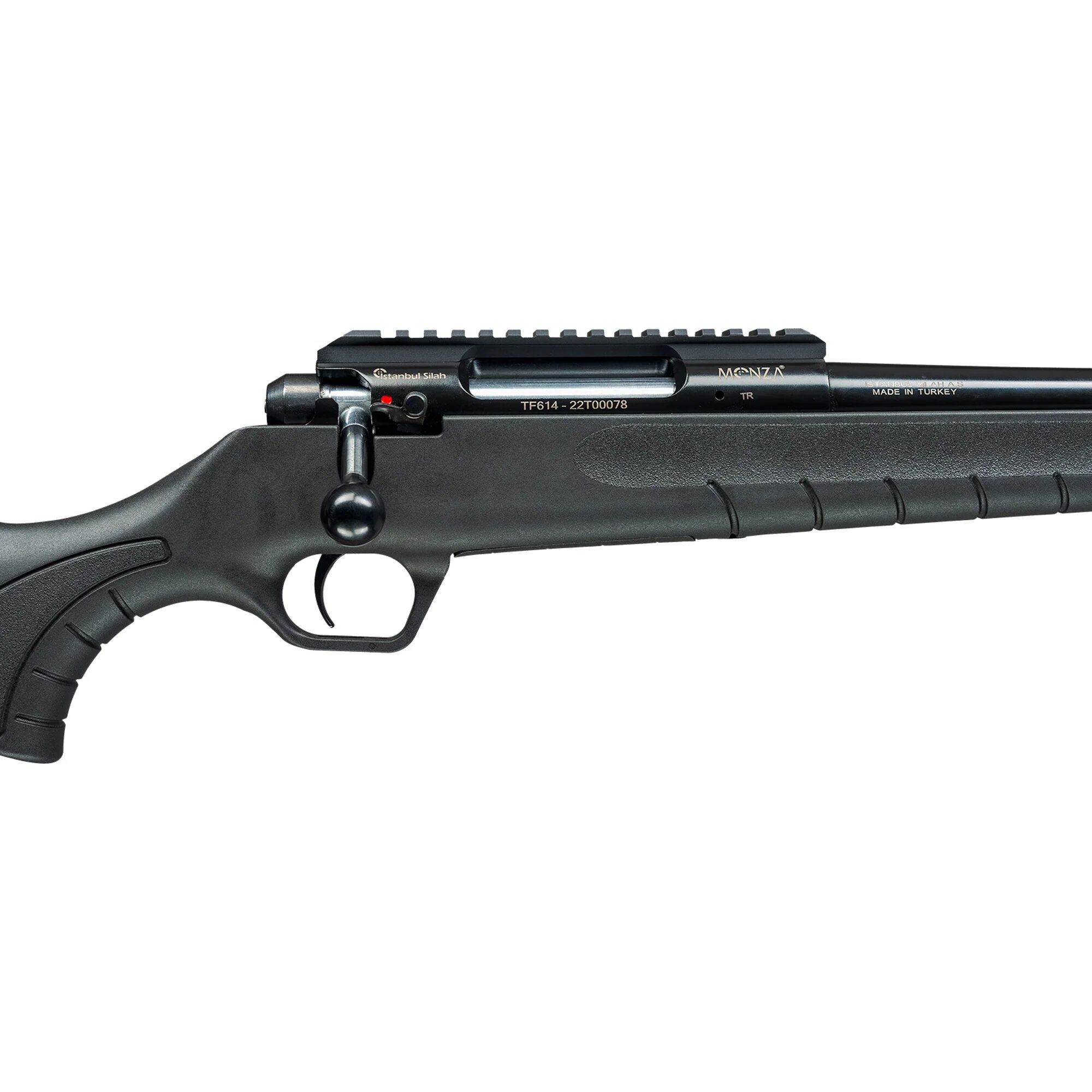 Die Repetierbüchse MONZA bietet alles was man von einem modernen Jagdgewehr erwartet. Ein solides System mit konventioneller Verriegelung, seitlicher Sicherung, Direktabzug und aufgesetzter Picatinny-Schiene, ein leichtgängiger Verschluss, einen präzise schießenden Lauf mit Mündungsgewinde, ein Metallmagazin und einen ergonomischen Kunststoff-Schaft mit Schaftrückenverstellung.