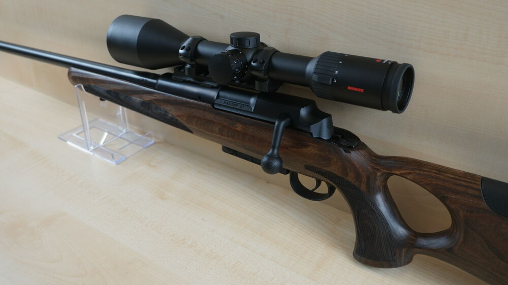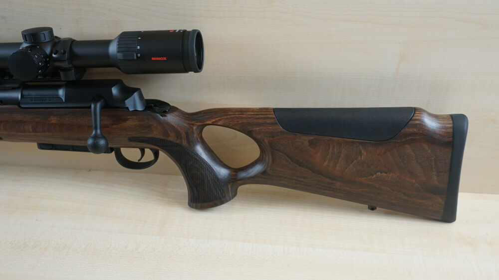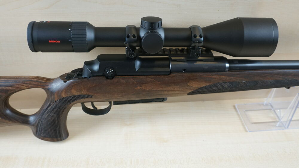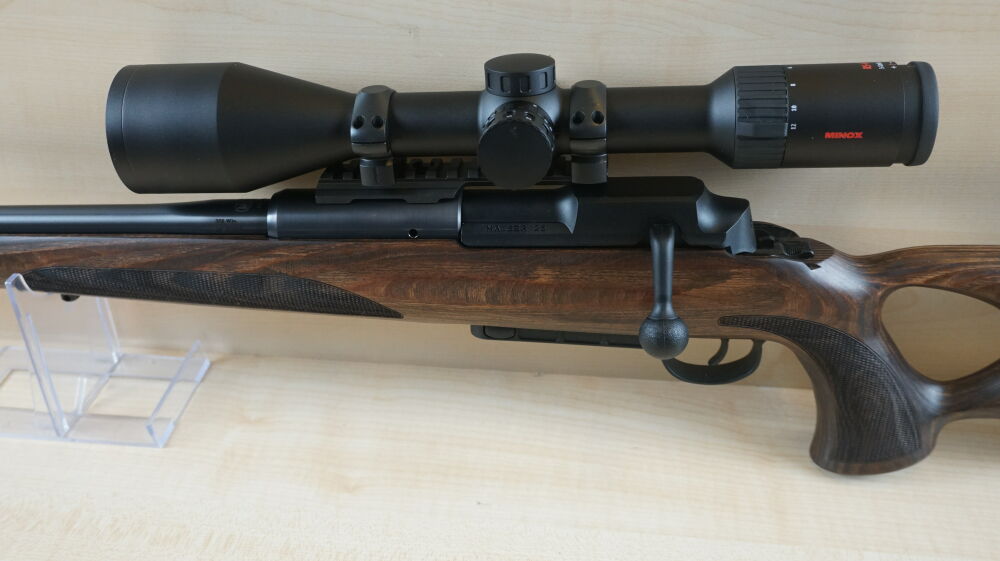 Linkssystem Repetierbüchse Mauser 25 Max im Kaliber 308 Win. mit Lauflänge 51 cm und Mündungsgewinde, verstellbarem Schaftrücken, Picatinny Schiene, Ringmontage und Zielfernrohr Minox RS-4, 3 - 12 x 5... ...weiterlesen