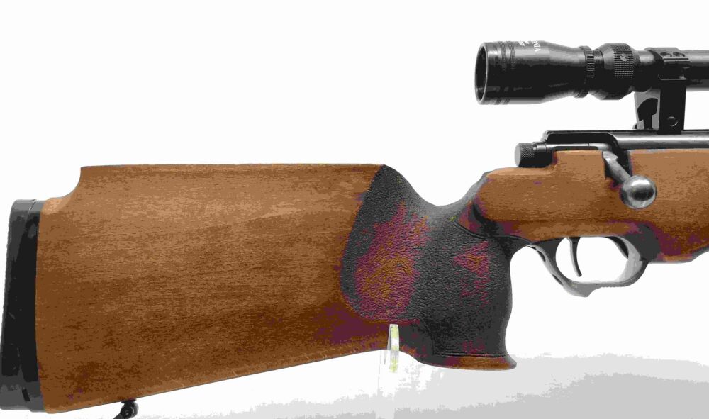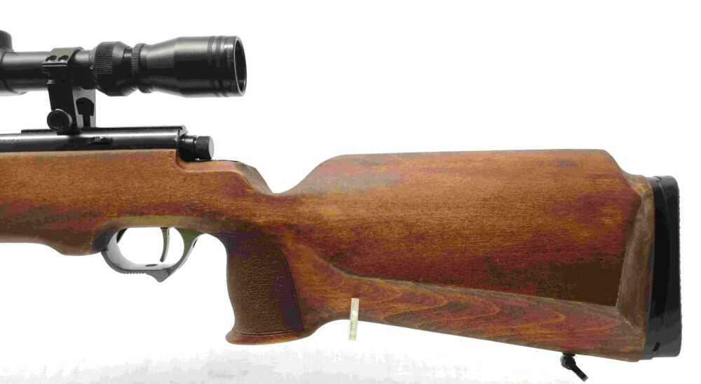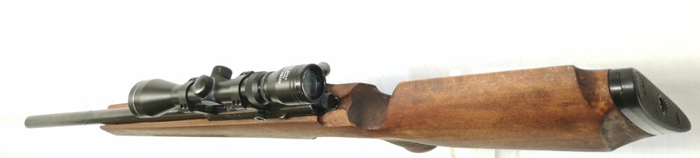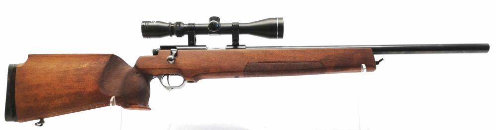 N3404 Sportwaffen Suhl - M150 - Note 2 - Unikat, Schaft & Lauf fachmännisch bearbeitet, Schaft geschliffen, UIT Schiene entfernt, schlanker gefräst und Lauf um ca. 8 cm gekürzt, nicht neu brüniert (der Historie wegen), Zielfernrohr mittels Durchsicht-Ringmontage montiert, verstellbare Schaftbacke, Abzug verstellbar, Waffe steht optisch und technisch gut da, durch die Laufkürzung kompakter und leichter als normale M150 *** EWB-pflichtig *** Ein Neubeschuß muss getätigt werden, sofern die Waffe nicht an einen Händler geht oder druch einen Händler in den Export --> Zusatzkosten ca. 80,00 EUR!