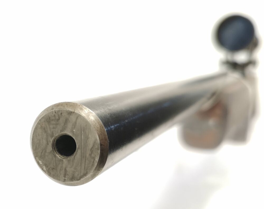 Besonderheit: Unikat, Schaft & Lauf fachmännisch bearbeitet, Schaft geschliffen, UIT Schiene entfernt, schlanker gefräst und Lauf um ca. 8 cm gekürzt, nicht neu brüniert (der Historie wegen), Zielfernrohr mittels Durchsicht-Ringmontage montiert, verstellbare Schaftbacke, Abzug verstellbar, Waffe steht optisch und technisch gut da, durch die Laufkürzung kompakter und leichter als normale M150