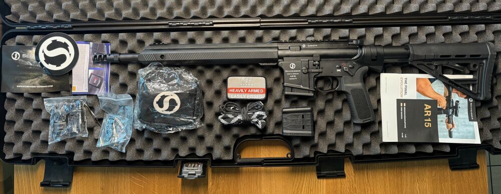 Die neue Schmeisser AR15 ist komplett beidseitig bedienbar, besitzt ein 24 fach verstellbares Gasventil (somit ist Sie perfekt mit allen Arten von Schalldämpfern wie auch ohne einsetzbar und Sportschützen können Ihre Laborierung oder Munitionswünsche als auch dann den Rückstoß somit perfekt adaptieren/anpassen), einen Schubschaft nun auch für Sportschützen und dies alles in 14,5 Zoll Lauflänge.