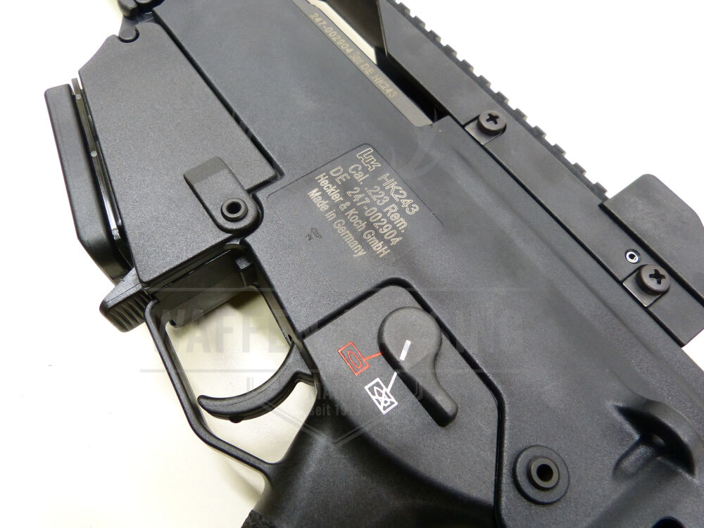 Das HK243 S SAR ist eine halbautomatische Selbstladebüchse im Kaliber .223 Remington. Das Sportgewehr basiert auf dem Design des G36. Es wurde speziell für dynamische Disziplinen konzipiert und orientiert sich am hohen Qualitätsanspruch des militärisch genutzten G36. Das Gehäuse besteht aus glasfaserverstärktem Polymer sowie einem abklappbaren Skelettschaft. Die Waffe verfügt über zwei Riemenbügelösen und einer Picatinny-Kunststoff-Visierschiene mit Dioptervisier. Das Sichern der Waffe ist in allen Ladezuständen möglich und sowohl die Sicherung als auch der Verschlusshebel sind beidseitig bedienbar. Das Magazin fasst 10 Schuss und ist aus Kunststoff. Die hier vorliegende halbautomatische Selbstladebüchse ist eine Neuwaffe in schwarzem Kunststoff.
