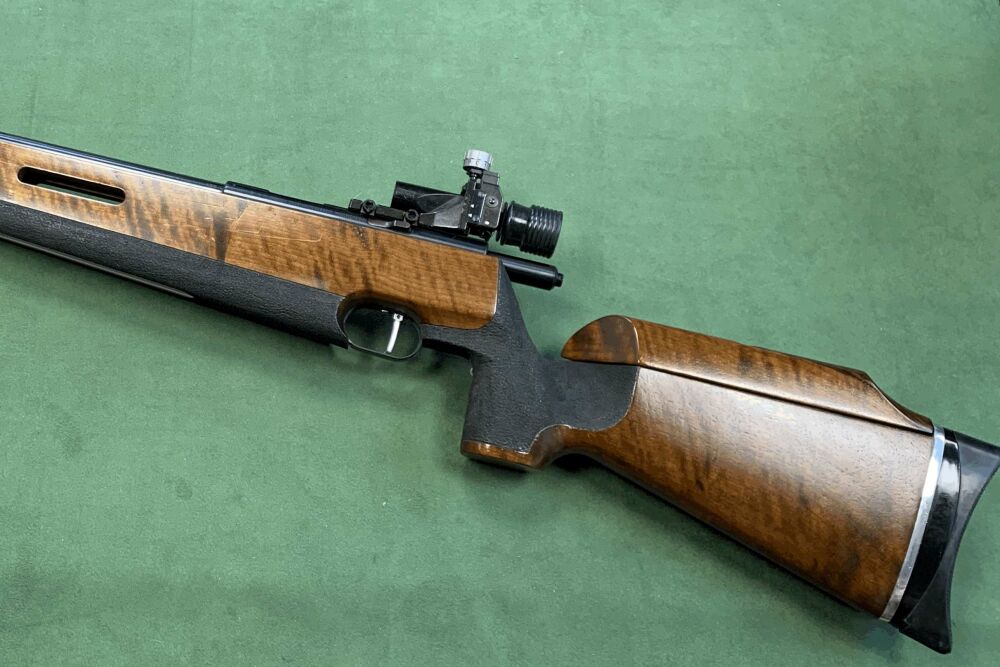 KK-Matchbüchse mit Anschützdiopter und Klarsichtringkorn; guter Gebrauchtzustand und gepflegt; Kal. .22lr