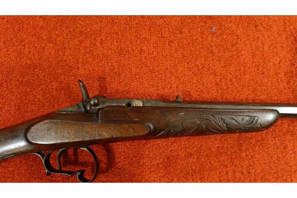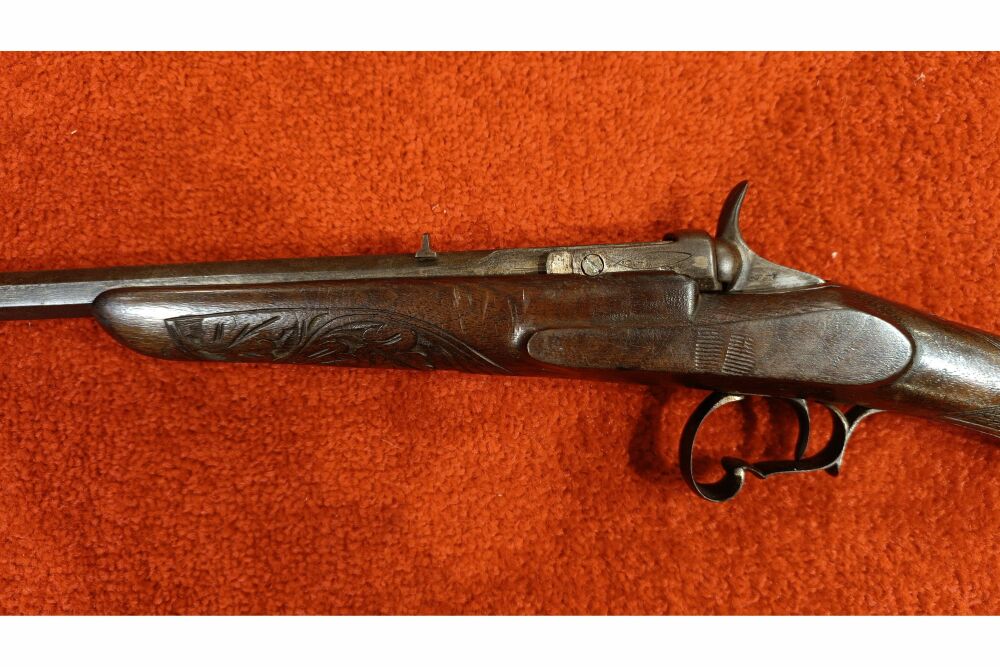 9mmFlobert+ Lauflänge 58cm+ Lauf innen dem Alter entsprechend + Nussbaumschaft ( Gebrauchsspuren vorhanden ) ( Vorderschaft gerissen, siehe Bilder )+ Hahnspanner+ Kimme und Korn vorhanden + Riemenbüge... ...weiterlesen