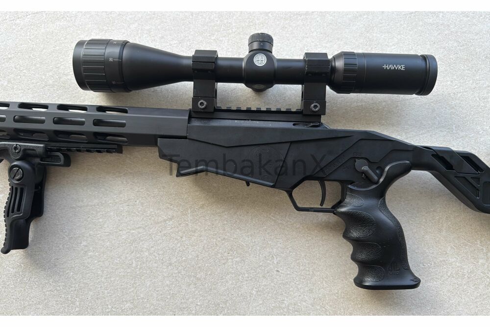 Der Timney-Abzug sorgt für ein sauberes, leichtes Abzugsverhalten, während das Hawke-Glas präzise Einstellungen und klare Abbildung ermöglicht. Perfekt für KK-Präzision, Field Target, Training oder Long Range .22lr.