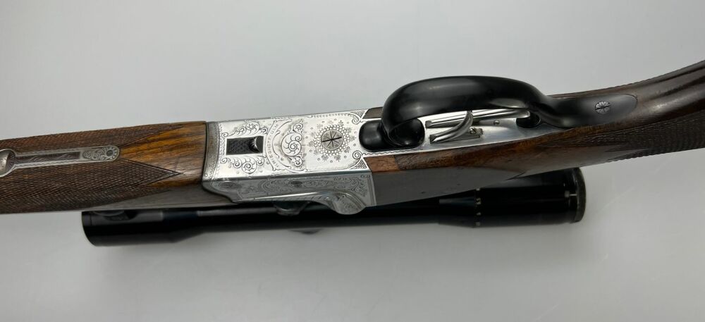 - Mit zusätzlichem Bockdoppelflinten-Lauf im Kaliber 16/70, Länge: 70,5 cm, Choke: 1/4 und 3/4