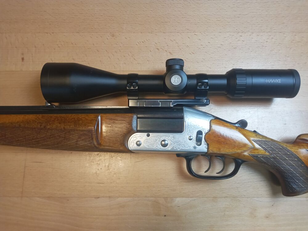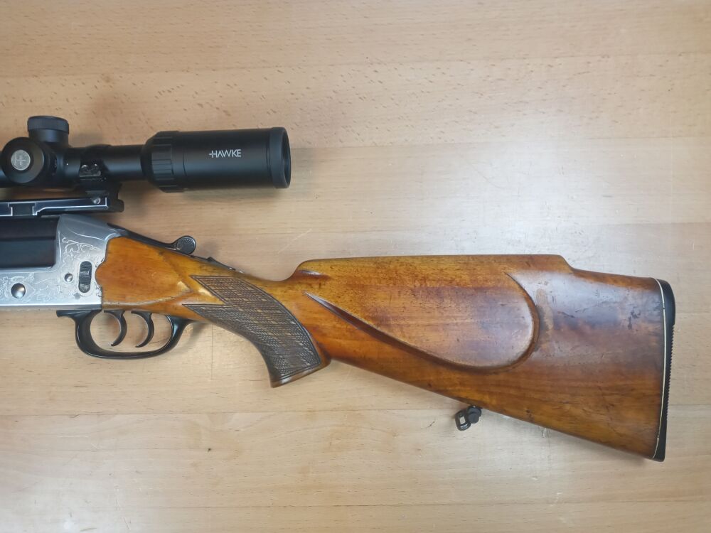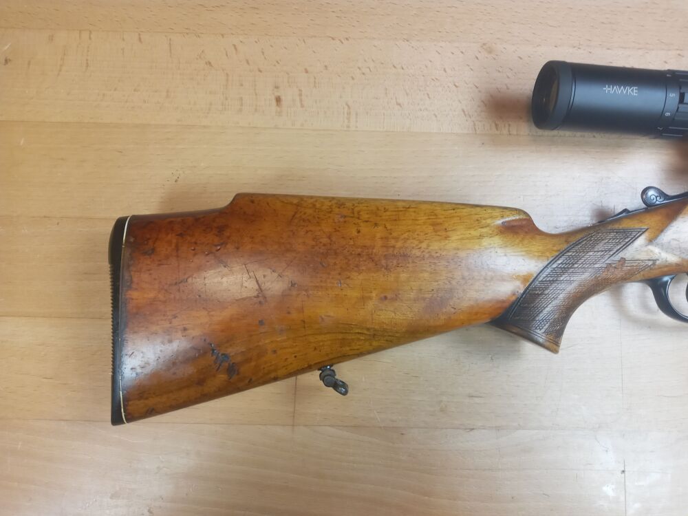 Heym, Münnerstadt Modell 22 SE 16/70 - 7x57R  Handspanner ( hinterer Abzug) Beschuss 19xx Lauflänge 600mm Schaftlänge 360mm ( Abzug - Mitte Schaftkappe) mit leichtem Bieberschwanzvorderschaft ... ...weiterlesen