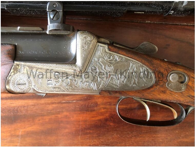 Biete im Kundenauftrag ( Grüb) einen Franz Sodia Bockdrilling /x57R ,22 Horn, 16/70 mit Tierstückgravur SEM Zeiss 1,5-6x42 Abs. 4
