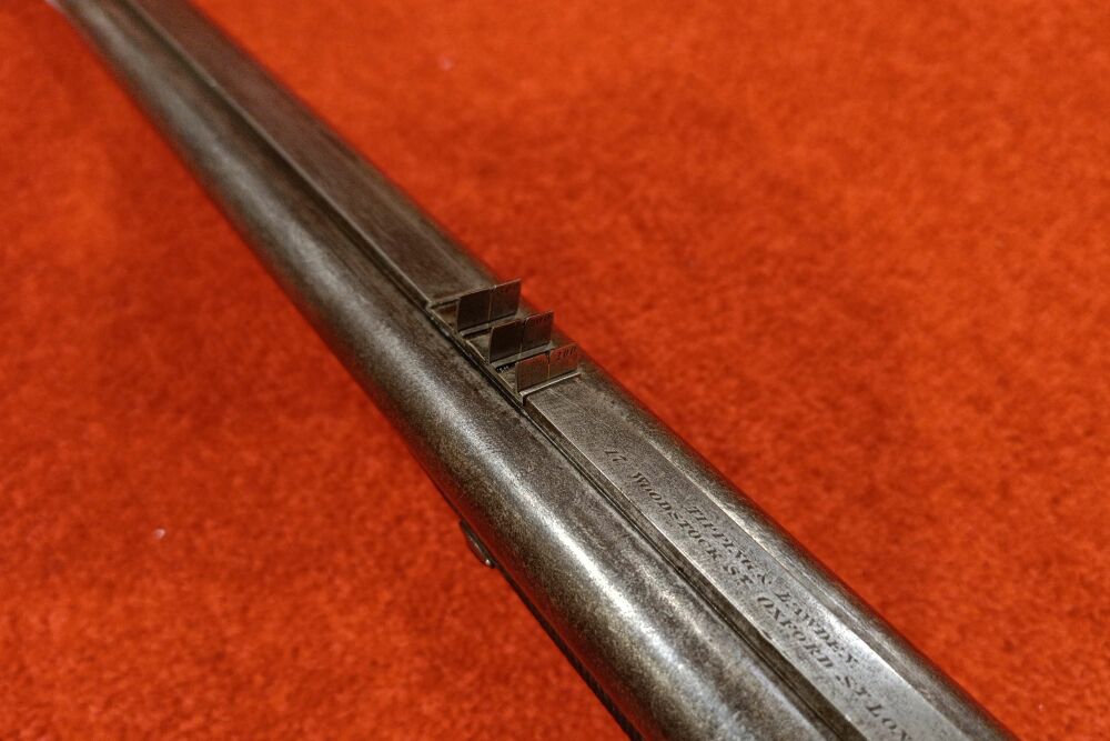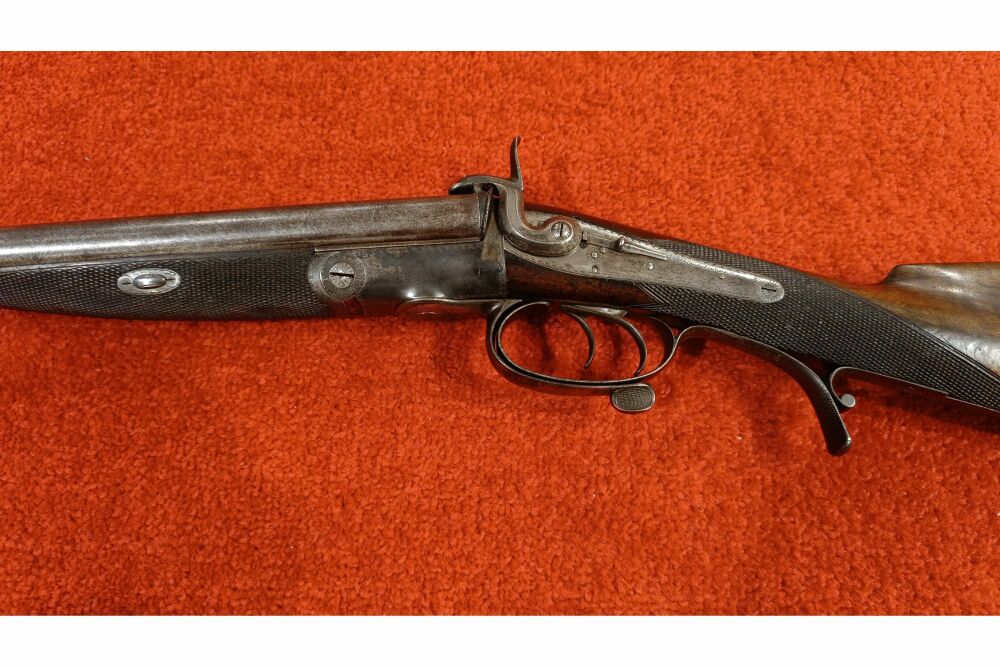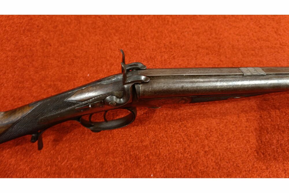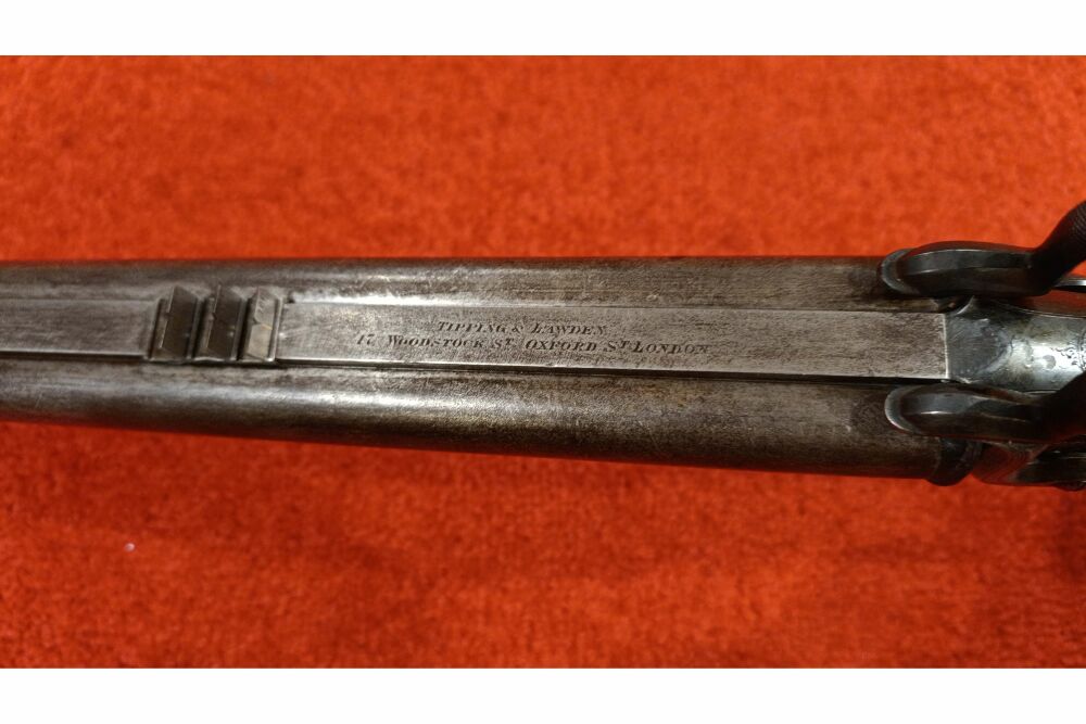 Doppelbüchse Tipping & Lawden London 15mmStiftfeuer+ Lauflänge 64cm+ Läufe innen dem Alter entsprechend gut+ Nussbaumschaft + Drei Kimmen für unterschiedliche Distanzen+ Stahlbaskühle + Lefaucheux... ...weiterlesen