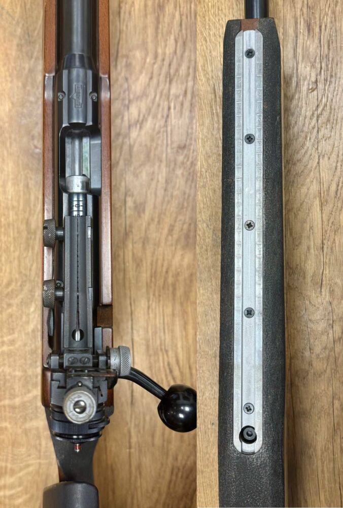 Es handelt sich um eine Matchwaffe mit verstellbarerem Schaft und Diopter-Visierung. Im Voderschaft ist eine Schiene angebracht.