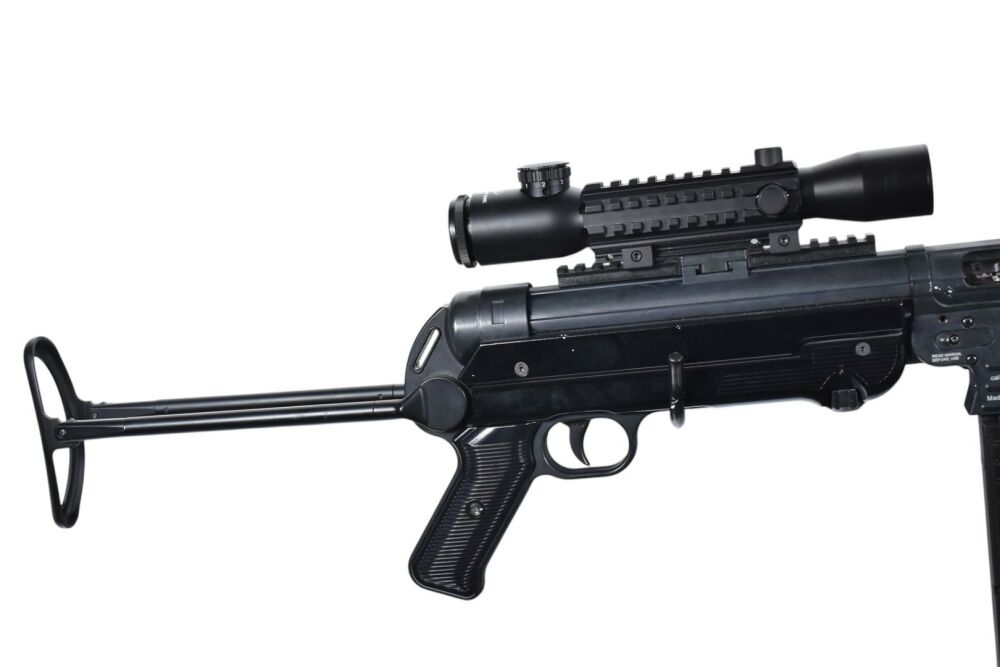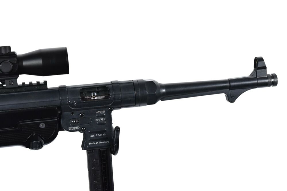 Diese Schmeisser GSG MP40 im Kaliber .22 lr ist eine moderne Nachbildung der legendären Maschinenpistole und verfügt über eine Lauflänge von 25 cm bei einer Gesamtlänge von 83 cm und einer Schaftlänge... ...weiterlesen