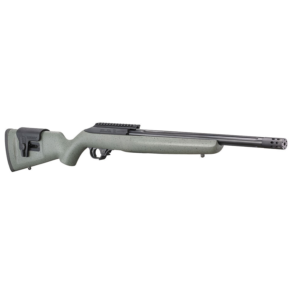 Bei der Competition setzt Ruger auf einen Schichtholzschaft mit einstellbarer Wangenauflage. Hier sollte jeder Schütze die richtige Position finden. Das System wurde aus einem Aluminium Block CNC gefräst. Der BX Abzug hat einen knackigen Druckpunkt in Verbindung mit einem kurzen Rückstellweg. Der 16 1/8" Blull Barrel wurde kaltgeschmiedet und mit einer Mündungsbremse versehen. Alles in Allem ein handliches und präzises Sportgerät.