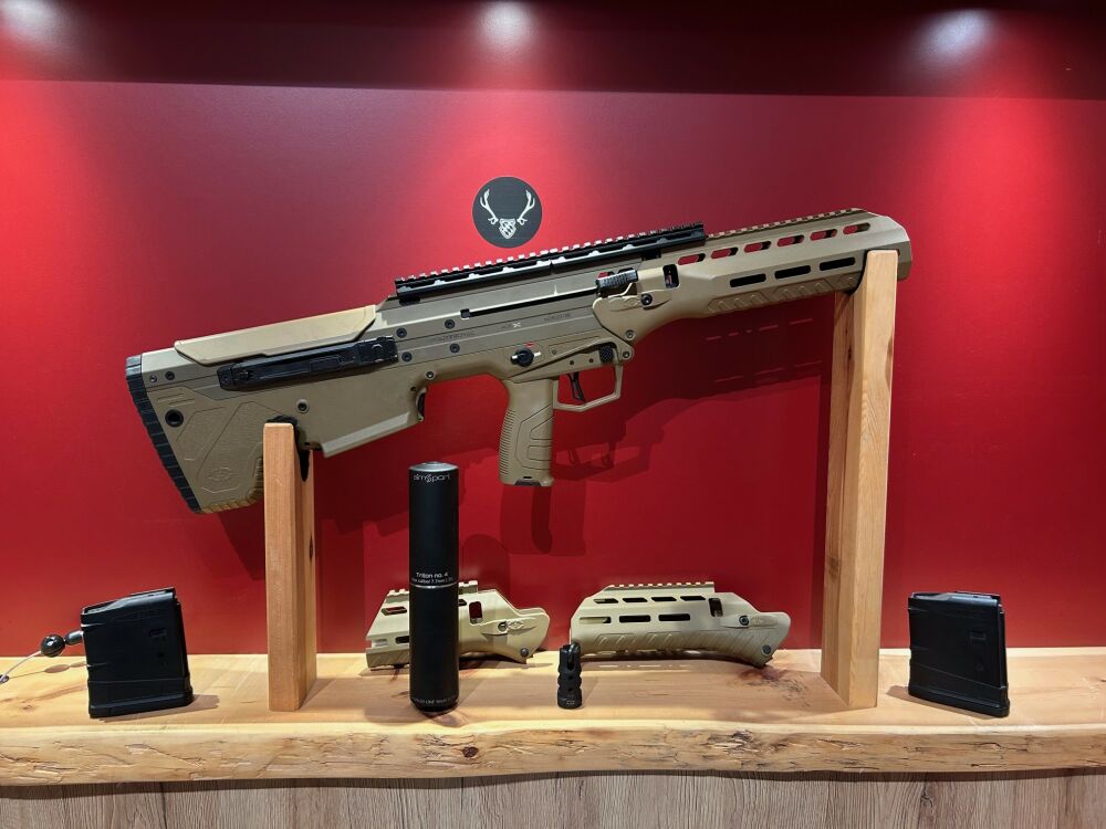 DesertTech MDRx - .308Win - 16'' Lauflänge - Farbe: Flat Dark Earth - 2x 10-Schuss Magazin - versch. Handläufe - Mündungsbremse - Schallsämpfer Aimsport Triton 4 ...weiterlesen