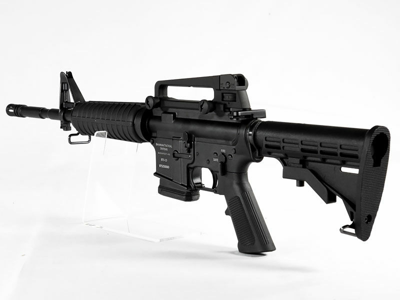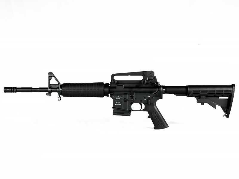 Die BTS-15 "M4A1" ist ein kurzer und führiger M4-Klon des deutsch-ungarischen Herstellers Bavarian Tactical Systems. Ziel der BTS-15 Modelle ist es, eine günstige, aber verlässliche AR15 auf den Markt zu bringen - sei es als Komplettwaffe für den Schützen, der nicht so viel Geld ausgeben möchte oder als Basiswaffe für den Bastler, der seine AR15 mit unterschiedlichen Komponenten ausstatten will. Das Gehäuse und versch. Kleinteile stammen aus eigener Produktion während andere Teile von etablierten Firmen zugekauft werden um eine komplette Waffe zu schaffen, welche mit einem sehr guten Preis- /Leistungsverhältnis aufwarten kann. Es handelt sich um eine MilSpec AR15 mit festen Korn, klassischen zweiteiligen Handschutz mit Hitzeblech und abnehmbaren Tragegriff/Visierbügel mit voll einstellbarer Lochkimme mit Klappdiopter. Die Waffe wird mit einem originalgetreuen M4-Schubschaft und einem Magpul Pmag ausgeliefert.