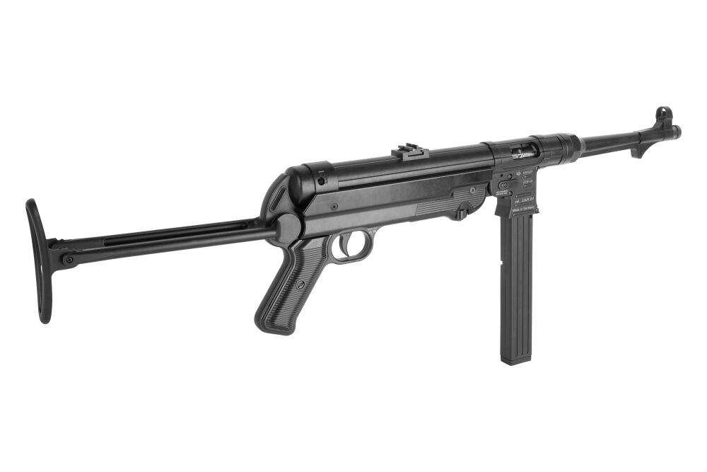 Die Maschinenpistole 40, wurde von 1940 bis 1944 von Erma und Steyr produziert. Die sehr führige und kompakte MP40 wurde in dieser Zeit über 1 Mio. mal hergestellt. Die nicht minder bekannten Vorgänger sind die MP36 und die MP38.