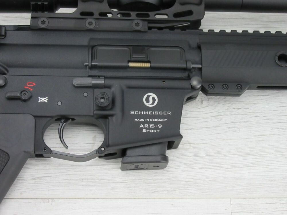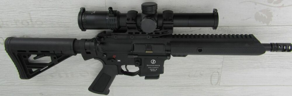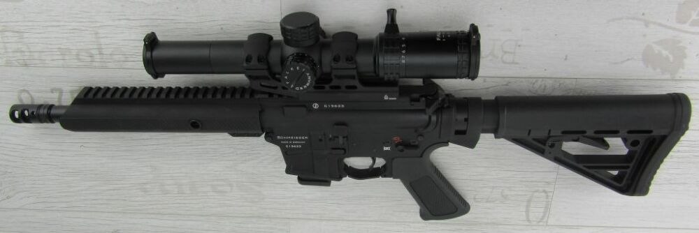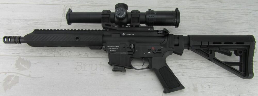 Schmeisser AR15-9Sport Kal. 9mmLuger Zustand Neu halbautomatische Büchse im Kaliber 9mmLuger Visierung: ZF Falke 1-8x26 Lauflänge: 30cm Gesamtlänge: 70cm - 78cm Beschuss: DE 20 Zusta... ...weiterlesen