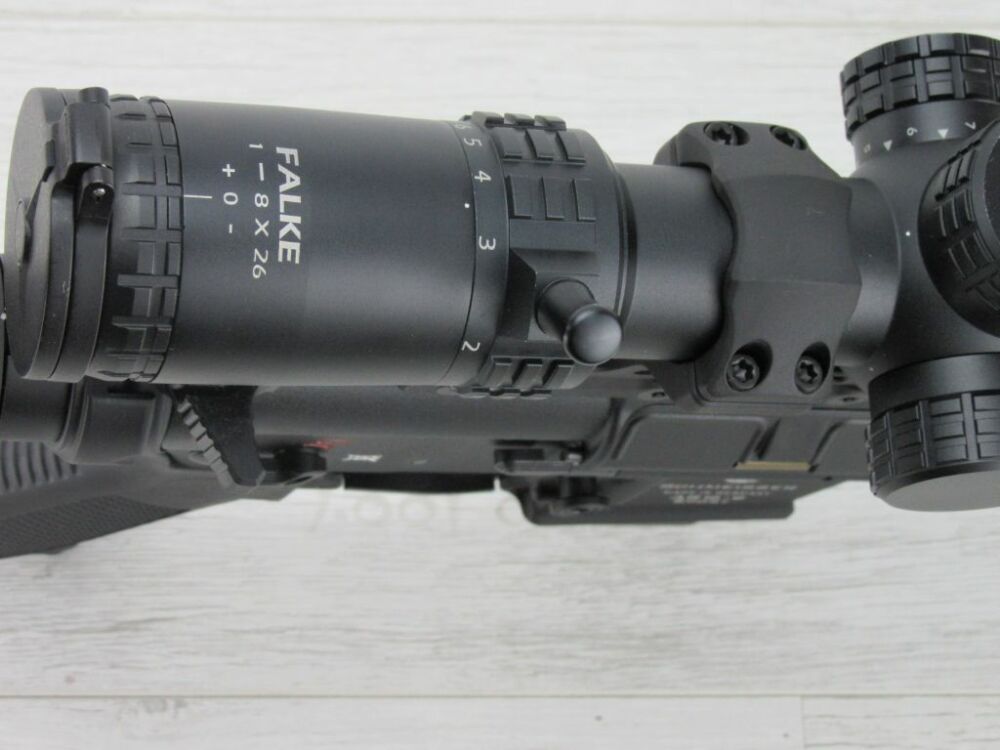 Falke Optik mit SAS Absehen (Speed Aiming Solution) ist in der ersten Bildebene.