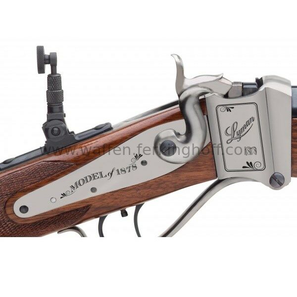 Kaliber .45-70Gov, Einzelladerbüchse Lyman 1878 Sharps, Runder Matchlauf Länge 30"/76,2cm, Diopter verstellbar, Doppelabzug, Gesamtlänge 47"/119,4cm, Custom Shop Pedersoli Italien. Begrenzte Stückzahl - Verkauf solange vorrätig!