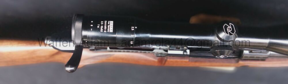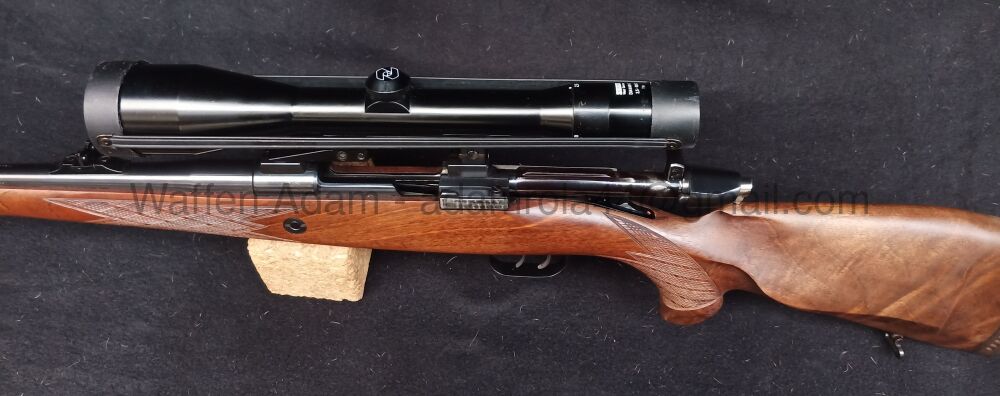 Voere Kufstein Repetierer Modell STL3, Kaliber 30.06, Nussholz Schaft mit Bayrischer Backe und leichtem Schweinsrücken, Pistolengriff mit Rosenholz Abschluss, Schottische Fischhaut am Pistolengriff und Vorderschaft. Variables Zielfernrohr Zeiss 2,5-10x52, Diavari Z, EAW-Schwenkmontage. Deutscher Stecher. Kolbenhals Sicherung.