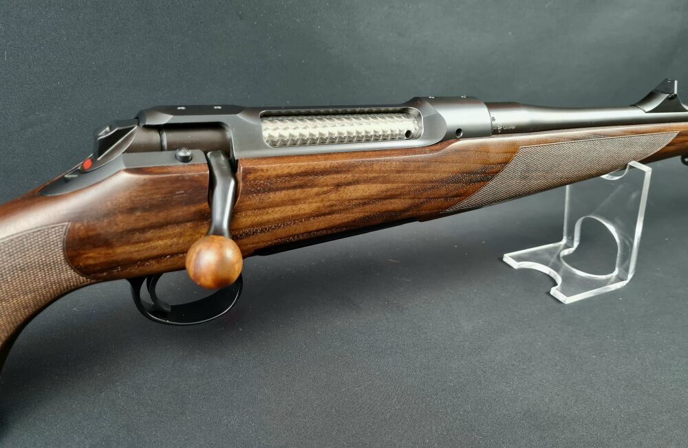 Durch optimale Schaftmaße wie z.B. schlanker Pistolengriff  und kompakte Schaftlänge für Jägerinnen hervorragend geeignet . Desweiteren hat sie einen verringerten Abstand der Schießhand zum Abzug.