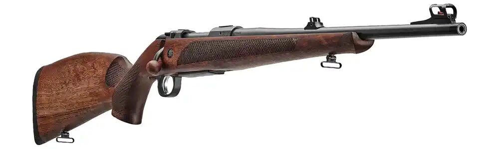 Der traditionelle Schaft ist aus ausgewähltem Nussbaumholz gefertigt. Die Fischhaut an Pistolengriff und Vorderschaft ermöglicht eine griffige und zuverlässige Handhabung. Der Kammergriff ist mit einer dekorativen Kugel aus Walnussholz versehen. Dieses Modell ist in fünf beliebten Jagdkalibern erhältlich – von .223 Rem. bis .300 Win. Mag. Der kaltgehämmerte Lauf hat ein Mündungsgewinde (inklusive Gewindeschutz) und eine Fluchtvisierung mit Leuchteinsätzen. Die Systemhülse aus Stahl ist für Zielfernrohrmontagen mit Remington 700 Montagebasis vorbereitet.