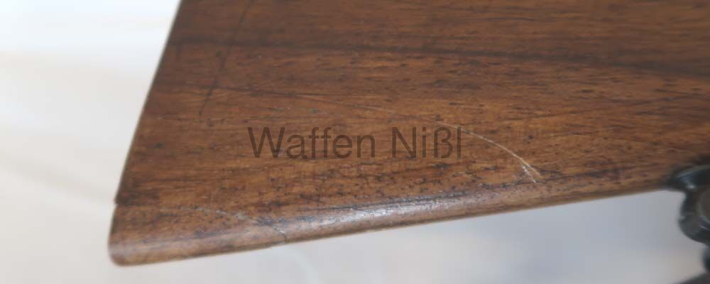 Brünierung leicht abgegriffen ; Schaftkappe fehlt ; Untere Ecke am Schaftende repariert