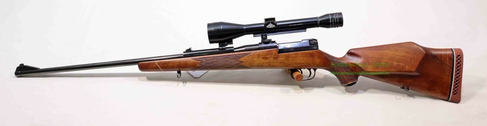 Selten geschossene Schrankwaffe, mit dem rückstoßarmen Weitschuss-Magnum-Kaliber (gute Auswahl ab Lager), patentierter Teleskop-Verschluss, deutscher Stecher auch als Direktabzug verwendbar, mit 3+1 Schuss, Suhler Einhak-Montage mit ZF Hertel & Reuss 2 3/4-10x46 Abs. 1, gut gemaserter Nußbaumschaft mit bayerischer Backe für Rechtsschützen, Schaftlänge: 380 mm