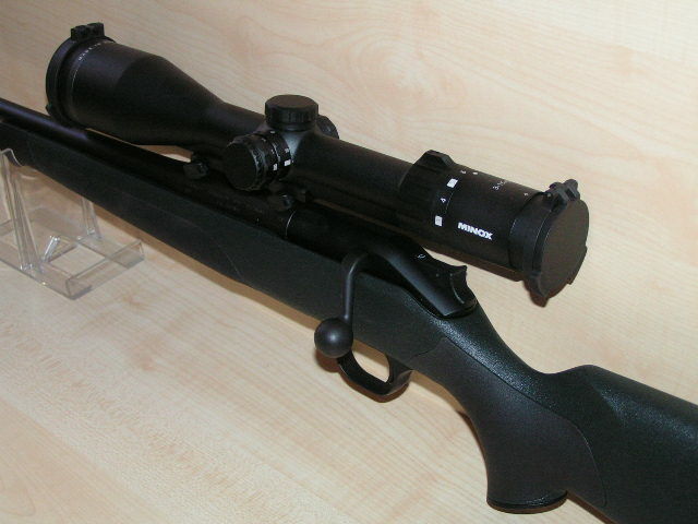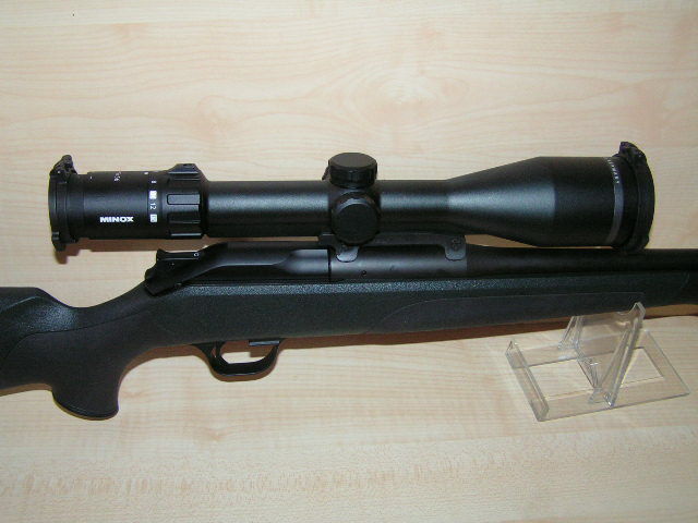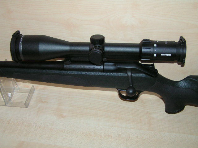 Linkssystem Repetierbüchse Blaser R8 Professional im Kaliber 308 Win. mit Mündungsgewinde, Blaser Sattelmontage und Zielfernrohr Minox 3 - 15 x 56 Leuchtabsehen 4. ...weiterlesen