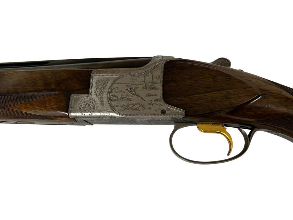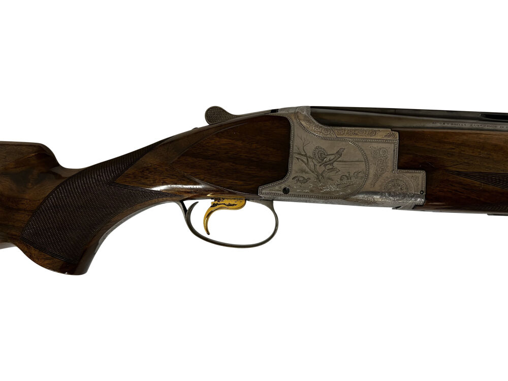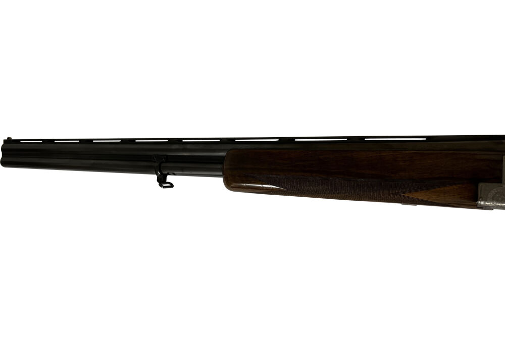 Die Browning B25, ein sehr schönes Sportgerät. Diese Waffe, im Kaliber 12/70, macht nicht nur auf dem Schießstand eine gute Figur. Diese Waffe lässt sich auch sehr gut jagdlichen führen. Mit einer Gesamtlänge von ca. 113 cm ist die Browning universell einsetzbar. Die Wasser hat leichte Gebrauchsspuren ist aber ansonsten optisch und technisch in einem 1A Zustand. Beide Läufe sind blank.