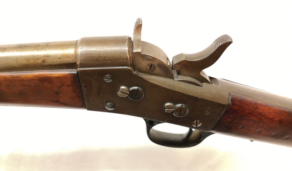 Besonderheit: Remington Rolling Block Action 1877-1886, Visierung demontiert, nicht nummerngleich