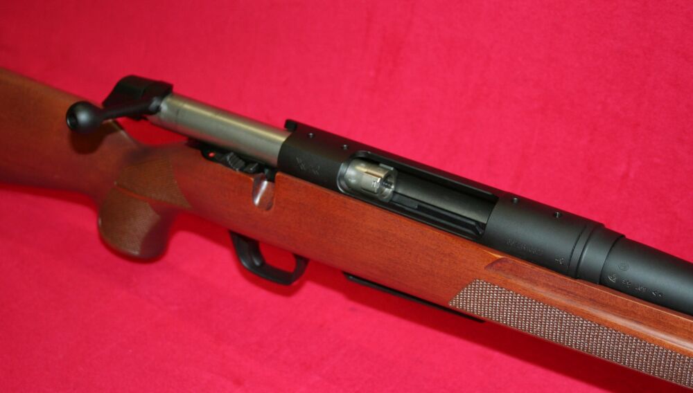 Repetierbüchse mit speziell entwickeltem Holzschaft mit rückstossfämpfender Inflex Schaftkappe.