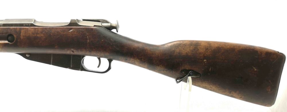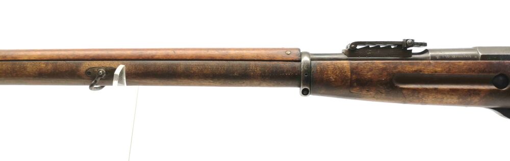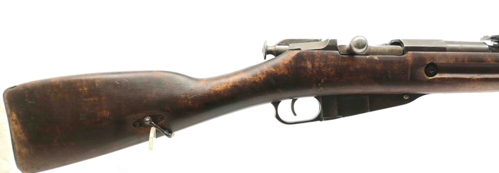 N3193 Mosin Nagant - 1891 Infantrie Rifle - Note 3 - finnischer Nagant von VKT, mit Patronenstempel "D", nicht gekürzter Lauf (Ursprungsmodell 1891 Infantrie Rifle), eckige Systemhülse, außerdem von der finnischen Armee gestemeplt (SA), Neubeschuß erfolgte im Juli 1992, Umbau zum Einzellader, rückbaubar durch einen Büchsenmacher, Lauf im guten Zustand für sein Alter, scharfe Felder & Züge, optisch im alterstypischen befriediegendem Zustand (Note 3), technisch einwandfrei, nicht nummerngleich, Metallschaftkappe, Überlänge (1305mm) *** Sperrgutsendung *** *** EWB-pflichtig ***