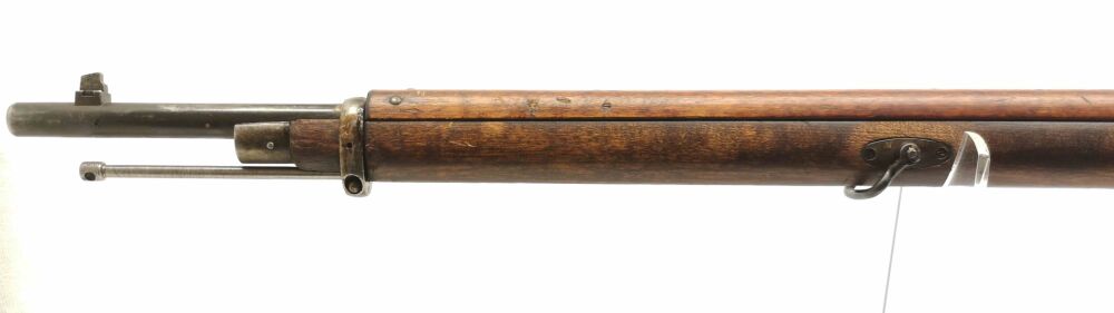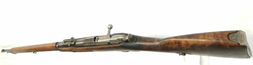 Besonderheit: finnischer Nagant von VKT, mit Patronenstempel "D", nicht gekürzter Lauf (Ursprungsmodell 1891 Infantrie Rifle), eckige Systemhülse, außerdem von der finnischen Armee gestemeplt (SA), Neubeschuß erfolgte im Juli 1992, Umbau zum Einzellader, rückbaubar durch einen Büchsenmacher, Lauf im guten Zustand für sein Alter, scharfe Felder & Züge, optisch im alterstypischen befriediegendem Zustand (Note 3), technisch einwandfrei, nicht nummerngleich, Metallschaftkappe, Überlänge (1305mm) *** Sperrgutsendung ***