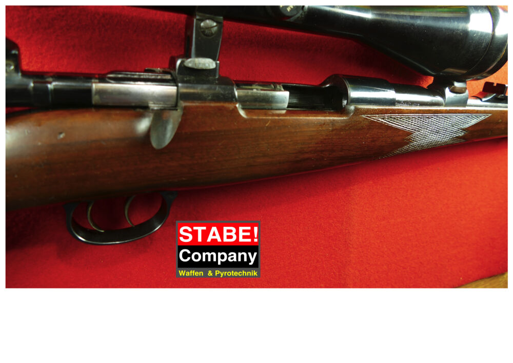 klassische Jagdwaffe Nussbaumholzschaft französischer Stecherabzug, vorne, verstellbar feststehende Visierung Suhler Einhakmontage mit ZF Schmidt & Bender 8x56 Riemenöse Laufläng... ...weiterlesen