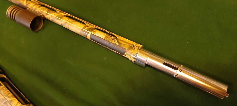 Bewährte und funktionsstabile Flinte mit 76 cm Lauflänge + Austauschlauf in 61 cm Länge, als führige Version für Nachsuche / Hundeführer. Die Waffe wurde sehr wenig genutzt und ist in einem gepflegt gutem Zustand. Nur der Ring mit dem vorderen Riemenbügel ist nicht dabei. Rückstoßdämpfungssystem am Hinterschaft, Gummieinlagen für sicheren Halt.