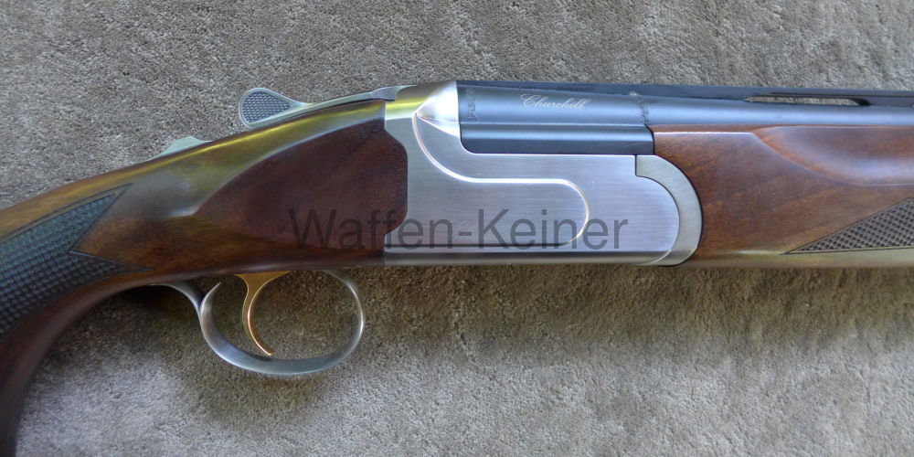 Bockdoppelflinte AKKAR Churchill 206E Hunting mit schönem Nußbaumschaft, Ejektoren, umschaltbarer Einabzug, Systemkasten aus Stahl, Stahlschrotbeschuß, 5 Wechselchokes, Lauflänge 71 cm, Schaftlänge zwischen 36 und 38 cm durch Schaftkappe nach Wunsch, Gewicht 3,25 Kg, 5 Jahre Garantie, für 40,00 Euro Aufpreis erhalten Sie auch eine Linksausführung oder einen mattschwarzen Systemkasten.