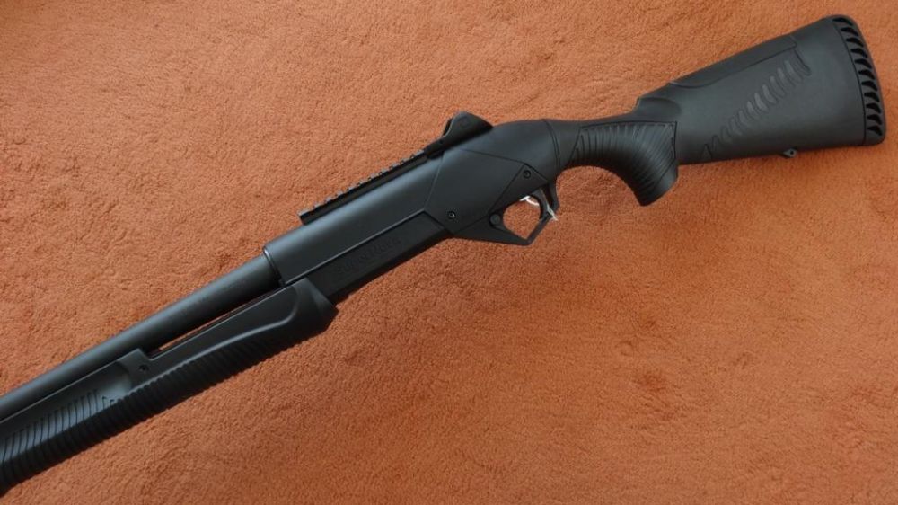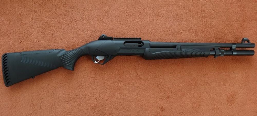 Vorderschaft-Repetierflinte Benelli: Supernova Tactical Kal. 12/89 incl.Weaverschien und mit Magazinverlängerung.