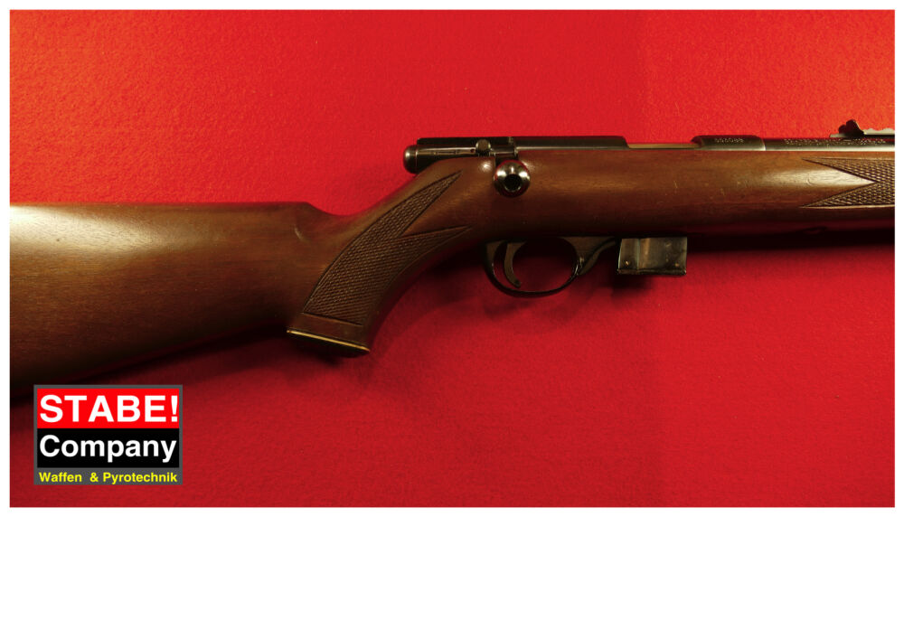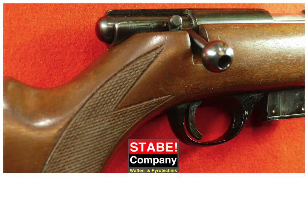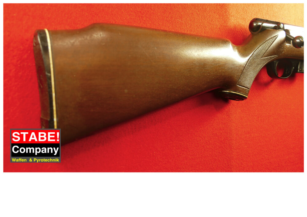 Nussbaumholzschaft Sicherung verstellbare Visierung Prismenschiene gute Schusspräzision Lauflänge: 56 cm Schaftende-Abzug: 36 cm Beschuss: 1979 ...weiterlesen