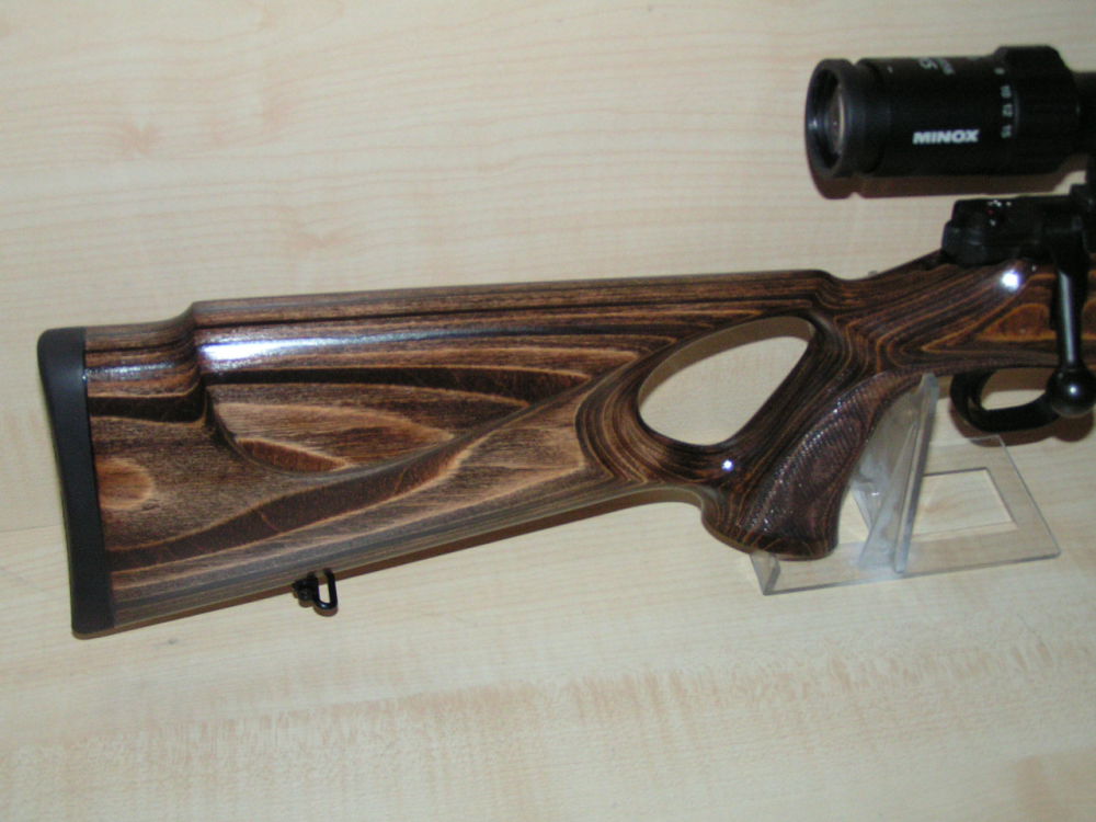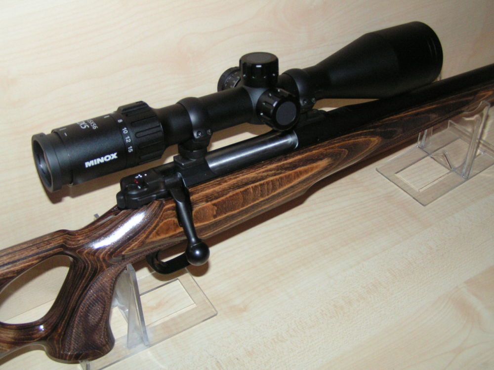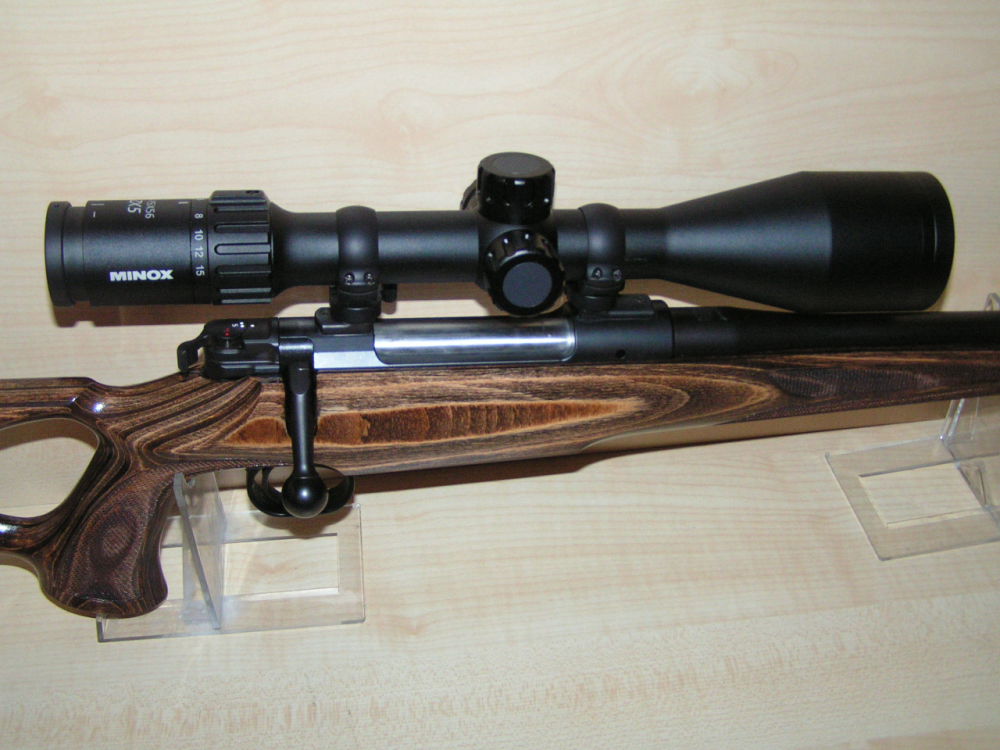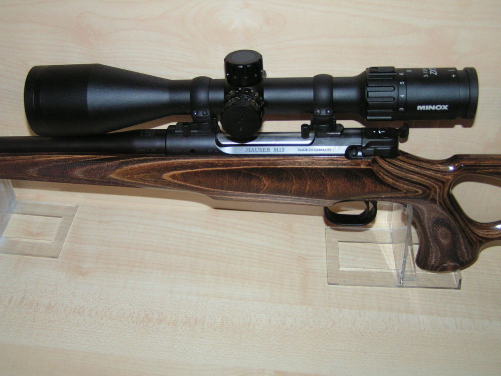 Repetierbüchse Mauser 12 Max im Kaliber 308 Win. mit Handspannung, Schichtholz - Lochschaft, Schaftrückenverstellung, 51 cm Lauflänge mit Mündungsgewinde, Mauser Hexa Lock Montage und Zielfernrohr Minox, 3 - 15 x 56 Leuchtabsehen 4.